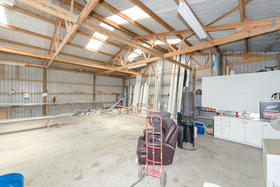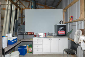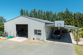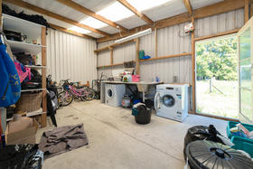 This would have to be one of the more versatile sheds that I have seen on a lifestyle block for some time. There are two rooms which are fully lined and have power points and TV connections. One is currently a bedroom and the other is a combination of a bedroom & an office. There is a separate bathroom with shower and toilet and it has its own hot water cylinder which also supplies a separate washroom. Part of the shed is a carport with a concrete apron and would you believe, "there is still room to fit a bus inside, literally!!"