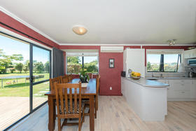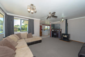 Originally this home had a brick exterior. When relocated to its present location the home was re-clad with hardiplank. Also at this time, the home was rewired and completely renovated inside as well. The wood burner has a wetback and along with the versatility of 2 heat pumps makes this a very comfortable home for all seasons. The kitchen has an under bench oven, ceramic top cooker, microwave shelf and a dishwasher. Water supply is roof collect into a 25,000 ltr tank for household use and has multiple sediment filters as well being UV filtered.