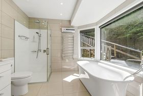 Spacious sunken living area 180deg views of the harbour, the city and the eastern hills and door to the deck. Relax in the evening in front of the gas fire. A designer kitchen with loads of storage and a Butlers area, dining area, breakfast nook, library/study/media room and a guest bathroom. Balcony off the breakfast area for enjoying the morning sun. Small deck and access to the rear of the property from the library.